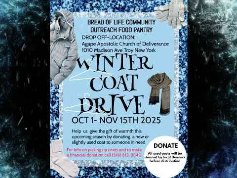 October 1 – November 15, 2025- All donated coats will be professionally cleaned by local cleaners before being distributed to those in need. - If you’d like to arrange a coat pickup or make a financial donation, please call (518) 813-8840 for more information. - Let’s come together to give the gift of warmth this winter. Your generosity can help bring comfort and care to our neighbors in need. β€οΈ