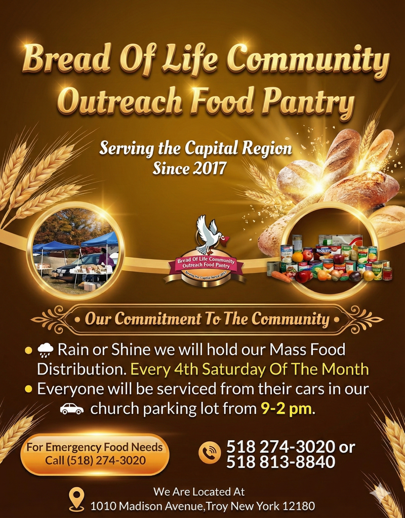 The Bread of Life Community Outreach Food Pantry is devoted to meeting the physical and emotional needs of individuals and families throughout the Capital Region. Since 2017, we have worked to bridge the gap for those experiencing food insecurity by providing dependable access to nutritious food, household staples, and compassionate support. Our ministry exists to ensure that no member of our community is overlooked, underserved, or left without hope.